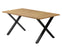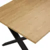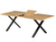 Mesa extensível de madeira com acabamento em melamina tipo carvalho.
